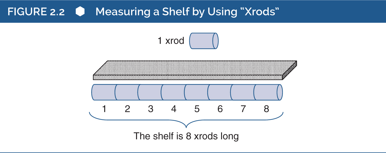 Наприклад, коли ви використовували xrod для вимірювання довжини шматка деревини, ви розміщували xrod кінець до кінця, починаючи з одного кінця деревини і продовжуючи, поки не досягали іншого кінця. Потім ви підраховували xrod, щоб визначити довжину об’єкта. Отриманий результат підрахунку був мірою довжини.